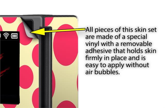 WraptoSkinz™ skins are superb photo quality designs and vibrant colors printed with special Eco-Friendly, fade resistant inks. Our skins are self-adhering flexible vinyl skins that helps prevent scratches. Made of composite, multi-layered commercial grade materials. The bottom layer is made with a special removable adhesive that is easily positioned and applied without air bubbles. We print your design on the bottom layer then bond a professional grade laminate over the entire skin adding a glossy protective finish.