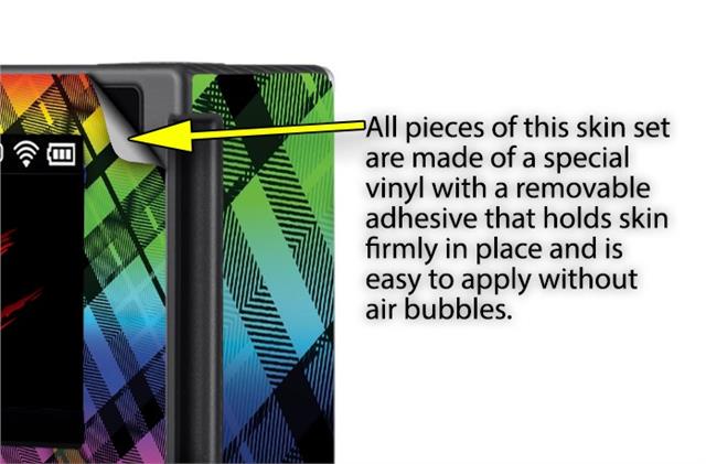 WraptoSkinz™ skins are superb photo quality designs and vibrant colors printed with special Eco-Friendly, fade resistant inks. Our skins are self-adhering flexible vinyl skins that helps prevent scratches. Made of composite, multi-layered commercial grade materials. The bottom layer is made with a special removable adhesive that is easily positioned and applied without air bubbles. We print your design on the bottom layer then bond a professional grade laminate over the entire skin adding a glossy protective finish.