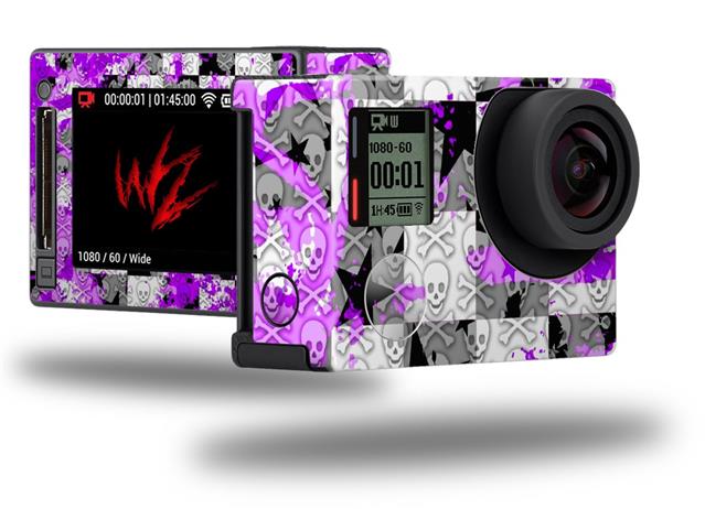 Purple Checker Skull Splatter - Decal Style Skin fits GoPro Hero 4 Silver Camera (GOPRO SOLD SEPARATELY)