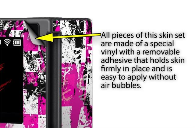 WraptoSkinz™ skins are superb photo quality designs and vibrant colors printed with special Eco-Friendly, fade resistant inks. Our skins are self-adhering flexible vinyl skins that helps prevent scratches. Made of composite, multi-layered commercial grade materials. The bottom layer is made with a special removable adhesive that is easily positioned and applied without air bubbles. We print your design on the bottom layer then bond a professional grade laminate over the entire skin adding a glossy protective finish.