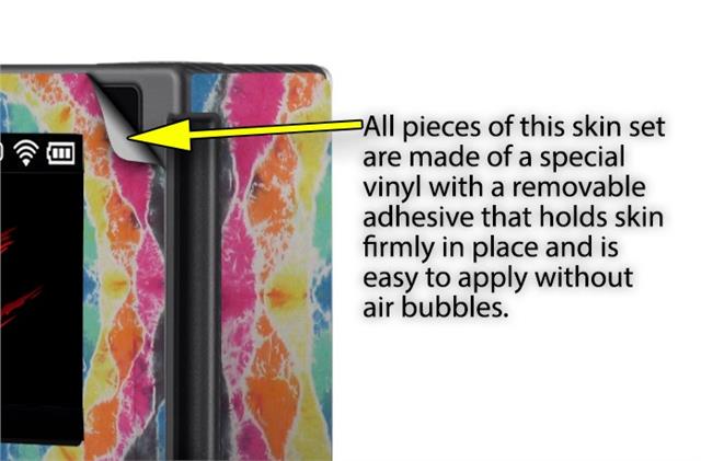 WraptoSkinz™ skins are superb photo quality designs and vibrant colors printed with special Eco-Friendly, fade resistant inks. Our skins are self-adhering flexible vinyl skins that helps prevent scratches. Made of composite, multi-layered commercial grade materials. The bottom layer is made with a special removable adhesive that is easily positioned and applied without air bubbles. We print your design on the bottom layer then bond a professional grade laminate over the entire skin adding a glossy protective finish.