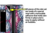 WraptoSkinz™ skins are superb photo quality designs and vibrant colors printed with special Eco-Friendly, fade resistant inks. Our skins are self-adhering flexible vinyl skins that helps prevent scratches. Made of composite, multi-layered commercial grade materials. The bottom layer is made with a special removable adhesive that is easily positioned and applied without air bubbles. We print your design on the bottom layer then bond a professional grade laminate over the entire skin adding a glossy protective finish.