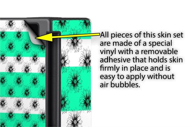 WraptoSkinz™ skins are superb photo quality designs and vibrant colors printed with special Eco-Friendly, fade resistant inks. Our skins are self-adhering flexible vinyl skins that helps prevent scratches. Made of composite, multi-layered commercial grade materials. The bottom layer is made with a special removable adhesive that is easily positioned and applied without air bubbles. We print your design on the bottom layer then bond a professional grade laminate over the entire skin adding a glossy protective finish.
