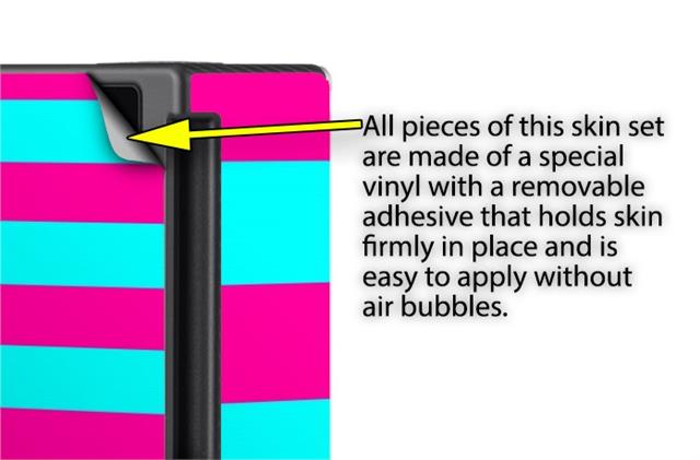 WraptoSkinz™ skins are superb photo quality designs and vibrant colors printed with special Eco-Friendly, fade resistant inks. Our skins are self-adhering flexible vinyl skins that helps prevent scratches. Made of composite, multi-layered commercial grade materials. The bottom layer is made with a special removable adhesive that is easily positioned and applied without air bubbles. We print your design on the bottom layer then bond a professional grade laminate over the entire skin adding a glossy protective finish.