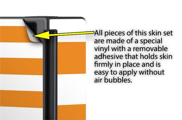 WraptoSkinz™ skins are superb photo quality designs and vibrant colors printed with special Eco-Friendly, fade resistant inks. Our skins are self-adhering flexible vinyl skins that helps prevent scratches. Made of composite, multi-layered commercial grade materials. The bottom layer is made with a special removable adhesive that is easily positioned and applied without air bubbles. We print your design on the bottom layer then bond a professional grade laminate over the entire skin adding a glossy protective finish.