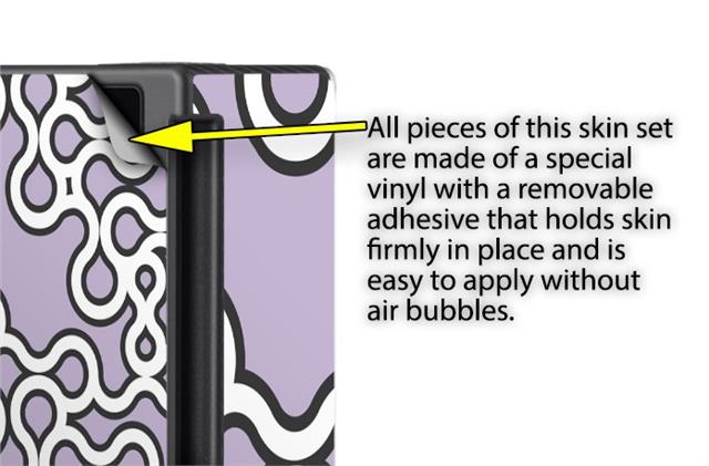 WraptoSkinz™ skins are superb photo quality designs and vibrant colors printed with special Eco-Friendly, fade resistant inks. Our skins are self-adhering flexible vinyl skins that helps prevent scratches. Made of composite, multi-layered commercial grade materials. The bottom layer is made with a special removable adhesive that is easily positioned and applied without air bubbles. We print your design on the bottom layer then bond a professional grade laminate over the entire skin adding a glossy protective finish.