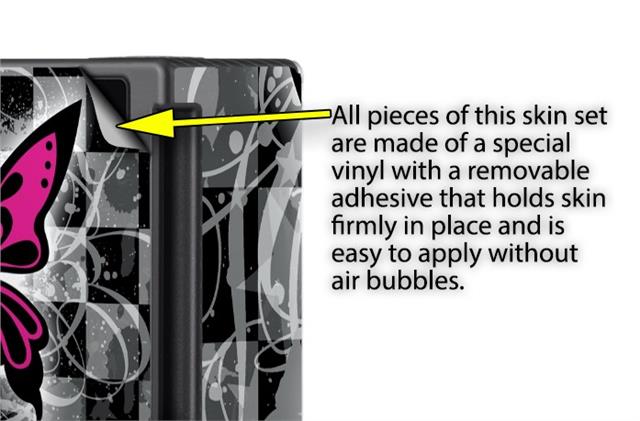 WraptoSkinz™ skins are superb photo quality designs and vibrant colors printed with special Eco-Friendly, fade resistant inks. Our skins are self-adhering flexible vinyl skins that helps prevent scratches. Made of composite, multi-layered commercial grade materials. The bottom layer is made with a special removable adhesive that is easily positioned and applied without air bubbles. We print your design on the bottom layer then bond a professional grade laminate over the entire skin adding a glossy protective finish.