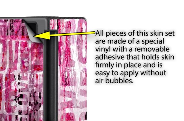 WraptoSkinz™ skins are superb photo quality designs and vibrant colors printed with special Eco-Friendly, fade resistant inks. Our skins are self-adhering flexible vinyl skins that helps prevent scratches. Made of composite, multi-layered commercial grade materials. The bottom layer is made with a special removable adhesive that is easily positioned and applied without air bubbles. We print your design on the bottom layer then bond a professional grade laminate over the entire skin adding a glossy protective finish.