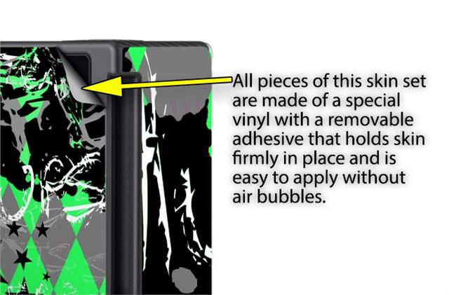 WraptoSkinz™ skins are superb photo quality designs and vibrant colors printed with special Eco-Friendly, fade resistant inks. Our skins are self-adhering flexible vinyl skins that helps prevent scratches. Made of composite, multi-layered commercial grade materials. The bottom layer is made with a special removable adhesive that is easily positioned and applied without air bubbles. We print your design on the bottom layer then bond a professional grade laminate over the entire skin adding a glossy protective finish.