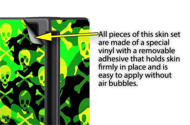 WraptoSkinz™ skins are superb photo quality designs and vibrant colors printed with special Eco-Friendly, fade resistant inks. Our skins are self-adhering flexible vinyl skins that helps prevent scratches. Made of composite, multi-layered commercial grade materials. The bottom layer is made with a special removable adhesive that is easily positioned and applied without air bubbles. We print your design on the bottom layer then bond a professional grade laminate over the entire skin adding a glossy protective finish.