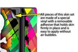 WraptoSkinz™ skins are superb photo quality designs and vibrant colors printed with special Eco-Friendly, fade resistant inks. Our skins are self-adhering flexible vinyl skins that helps prevent scratches. Made of composite, multi-layered commercial grade materials. The bottom layer is made with a special removable adhesive that is easily positioned and applied without air bubbles. We print your design on the bottom layer then bond a professional grade laminate over the entire skin adding a glossy protective finish.