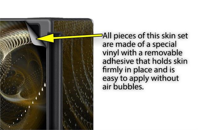 WraptoSkinz™ skins are superb photo quality designs and vibrant colors printed with special Eco-Friendly, fade resistant inks. Our skins are self-adhering flexible vinyl skins that helps prevent scratches. Made of composite, multi-layered commercial grade materials. The bottom layer is made with a special removable adhesive that is easily positioned and applied without air bubbles. We print your design on the bottom layer then bond a professional grade laminate over the entire skin adding a glossy protective finish.