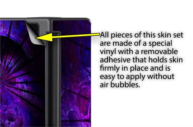 WraptoSkinz™ skins are superb photo quality designs and vibrant colors printed with special Eco-Friendly, fade resistant inks. Our skins are self-adhering flexible vinyl skins that helps prevent scratches. Made of composite, multi-layered commercial grade materials. The bottom layer is made with a special removable adhesive that is easily positioned and applied without air bubbles. We print your design on the bottom layer then bond a professional grade laminate over the entire skin adding a glossy protective finish.