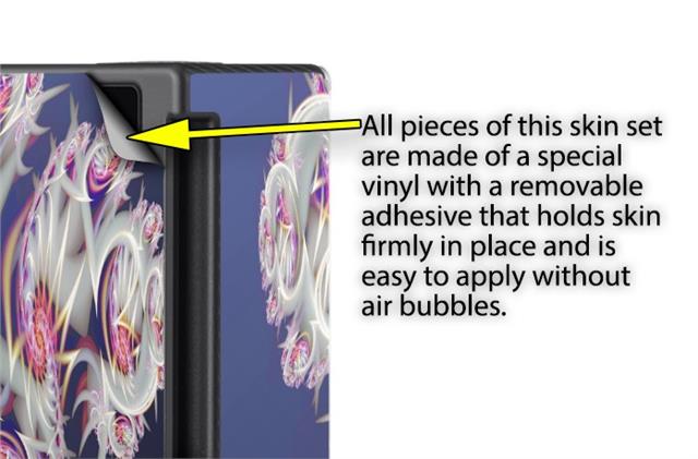 WraptoSkinz™ skins are superb photo quality designs and vibrant colors printed with special Eco-Friendly, fade resistant inks. Our skins are self-adhering flexible vinyl skins that helps prevent scratches. Made of composite, multi-layered commercial grade materials. The bottom layer is made with a special removable adhesive that is easily positioned and applied without air bubbles. We print your design on the bottom layer then bond a professional grade laminate over the entire skin adding a glossy protective finish.