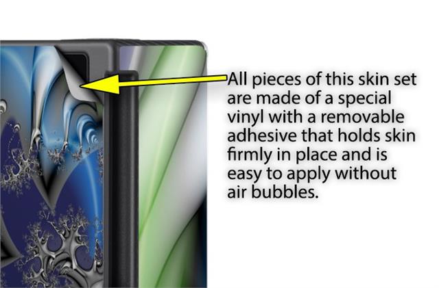 WraptoSkinz™ skins are superb photo quality designs and vibrant colors printed with special Eco-Friendly, fade resistant inks. Our skins are self-adhering flexible vinyl skins that helps prevent scratches. Made of composite, multi-layered commercial grade materials. The bottom layer is made with a special removable adhesive that is easily positioned and applied without air bubbles. We print your design on the bottom layer then bond a professional grade laminate over the entire skin adding a glossy protective finish.