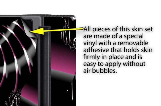 WraptoSkinz™ skins are superb photo quality designs and vibrant colors printed with special Eco-Friendly, fade resistant inks. Our skins are self-adhering flexible vinyl skins that helps prevent scratches. Made of composite, multi-layered commercial grade materials. The bottom layer is made with a special removable adhesive that is easily positioned and applied without air bubbles. We print your design on the bottom layer then bond a professional grade laminate over the entire skin adding a glossy protective finish.