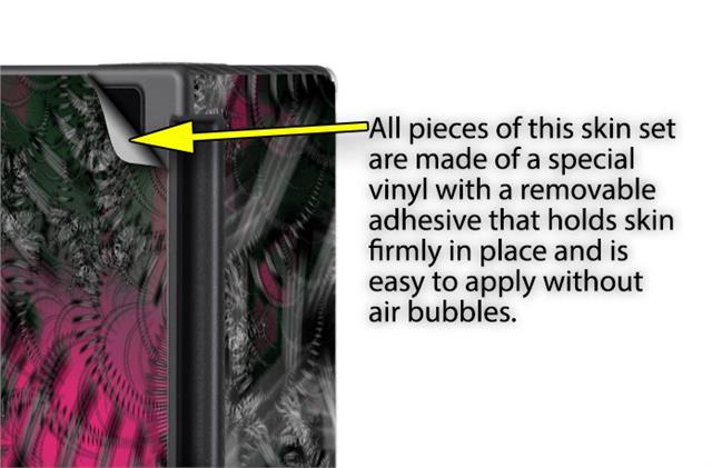 WraptoSkinz™ skins are superb photo quality designs and vibrant colors printed with special Eco-Friendly, fade resistant inks. Our skins are self-adhering flexible vinyl skins that helps prevent scratches. Made of composite, multi-layered commercial grade materials. The bottom layer is made with a special removable adhesive that is easily positioned and applied without air bubbles. We print your design on the bottom layer then bond a professional grade laminate over the entire skin adding a glossy protective finish.