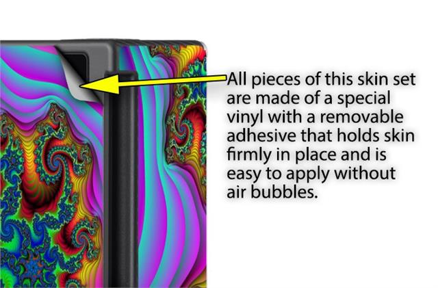 WraptoSkinz™ skins are superb photo quality designs and vibrant colors printed with special Eco-Friendly, fade resistant inks. Our skins are self-adhering flexible vinyl skins that helps prevent scratches. Made of composite, multi-layered commercial grade materials. The bottom layer is made with a special removable adhesive that is easily positioned and applied without air bubbles. We print your design on the bottom layer then bond a professional grade laminate over the entire skin adding a glossy protective finish.