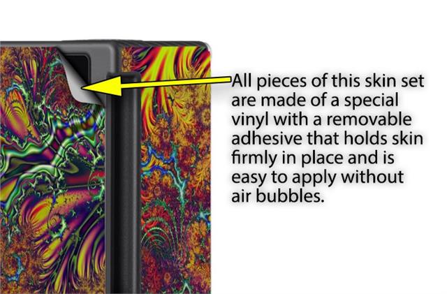 WraptoSkinz™ skins are superb photo quality designs and vibrant colors printed with special Eco-Friendly, fade resistant inks. Our skins are self-adhering flexible vinyl skins that helps prevent scratches. Made of composite, multi-layered commercial grade materials. The bottom layer is made with a special removable adhesive that is easily positioned and applied without air bubbles. We print your design on the bottom layer then bond a professional grade laminate over the entire skin adding a glossy protective finish.