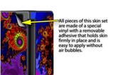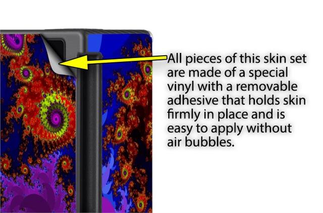 WraptoSkinz™ skins are superb photo quality designs and vibrant colors printed with special Eco-Friendly, fade resistant inks. Our skins are self-adhering flexible vinyl skins that helps prevent scratches. Made of composite, multi-layered commercial grade materials. The bottom layer is made with a special removable adhesive that is easily positioned and applied without air bubbles. We print your design on the bottom layer then bond a professional grade laminate over the entire skin adding a glossy protective finish.