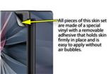 WraptoSkinz™ skins are superb photo quality designs and vibrant colors printed with special Eco-Friendly, fade resistant inks. Our skins are self-adhering flexible vinyl skins that helps prevent scratches. Made of composite, multi-layered commercial grade materials. The bottom layer is made with a special removable adhesive that is easily positioned and applied without air bubbles. We print your design on the bottom layer then bond a professional grade laminate over the entire skin adding a glossy protective finish.