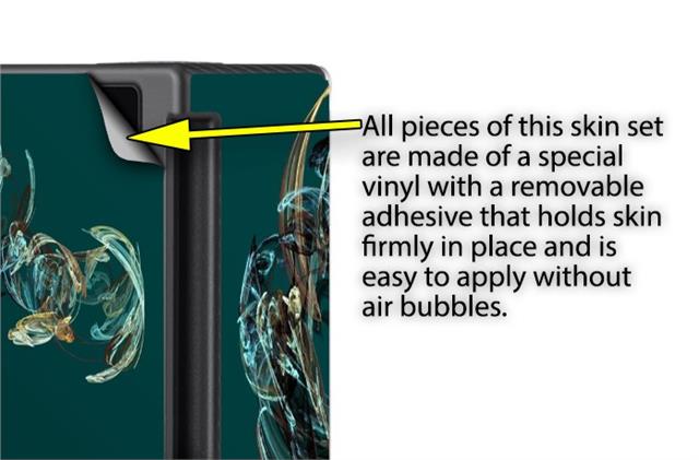 WraptoSkinz™ skins are superb photo quality designs and vibrant colors printed with special Eco-Friendly, fade resistant inks. Our skins are self-adhering flexible vinyl skins that helps prevent scratches. Made of composite, multi-layered commercial grade materials. The bottom layer is made with a special removable adhesive that is easily positioned and applied without air bubbles. We print your design on the bottom layer then bond a professional grade laminate over the entire skin adding a glossy protective finish.