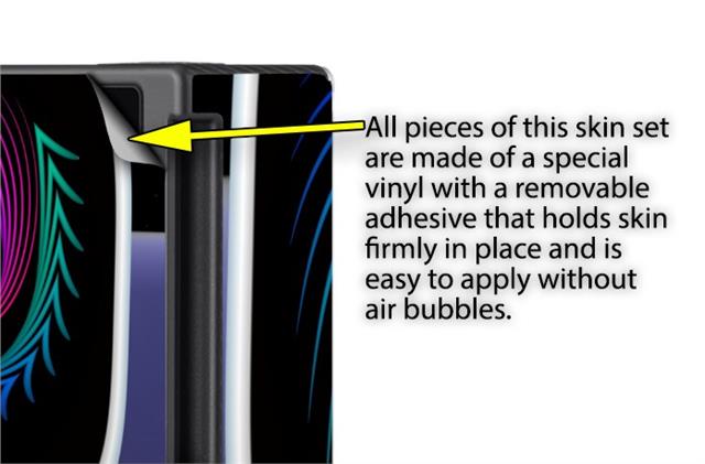 WraptoSkinz™ skins are superb photo quality designs and vibrant colors printed with special Eco-Friendly, fade resistant inks. Our skins are self-adhering flexible vinyl skins that helps prevent scratches. Made of composite, multi-layered commercial grade materials. The bottom layer is made with a special removable adhesive that is easily positioned and applied without air bubbles. We print your design on the bottom layer then bond a professional grade laminate over the entire skin adding a glossy protective finish.