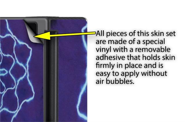 WraptoSkinz™ skins are superb photo quality designs and vibrant colors printed with special Eco-Friendly, fade resistant inks. Our skins are self-adhering flexible vinyl skins that helps prevent scratches. Made of composite, multi-layered commercial grade materials. The bottom layer is made with a special removable adhesive that is easily positioned and applied without air bubbles. We print your design on the bottom layer then bond a professional grade laminate over the entire skin adding a glossy protective finish.