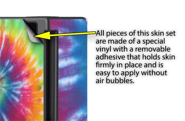 WraptoSkinz™ skins are superb photo quality designs and vibrant colors printed with special Eco-Friendly, fade resistant inks. Our skins are self-adhering flexible vinyl skins that helps prevent scratches. Made of composite, multi-layered commercial grade materials. The bottom layer is made with a special removable adhesive that is easily positioned and applied without air bubbles. We print your design on the bottom layer then bond a professional grade laminate over the entire skin adding a glossy protective finish.