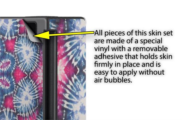 WraptoSkinz™ skins are superb photo quality designs and vibrant colors printed with special Eco-Friendly, fade resistant inks. Our skins are self-adhering flexible vinyl skins that helps prevent scratches. Made of composite, multi-layered commercial grade materials. The bottom layer is made with a special removable adhesive that is easily positioned and applied without air bubbles. We print your design on the bottom layer then bond a professional grade laminate over the entire skin adding a glossy protective finish.