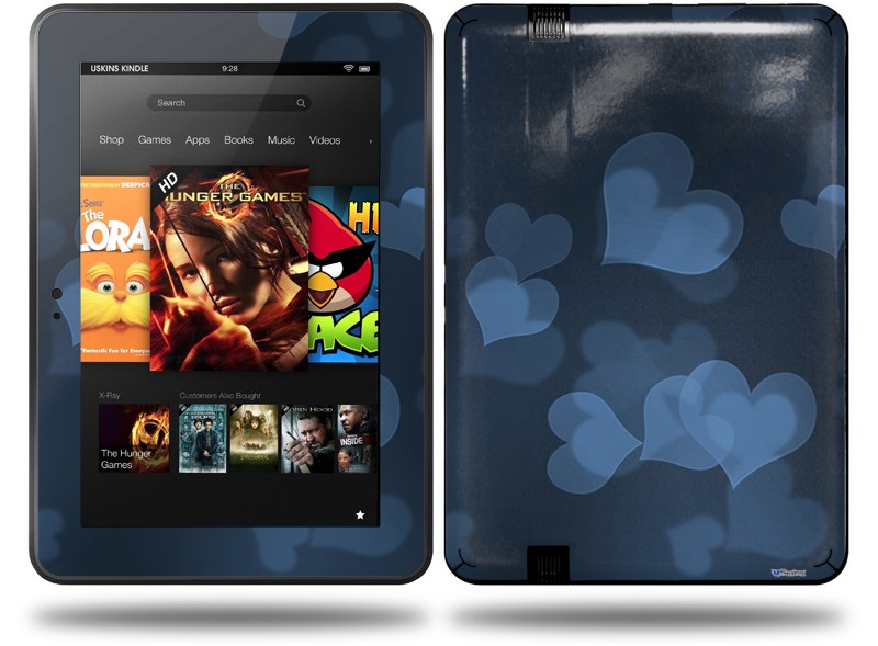 Bokeh Hearts Blue Decal Style Skin fits Amazon Kindle Fire HD 8.9 inch