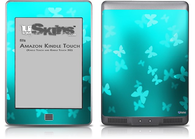 Bokeh Butterflies Neon Teal - Decal Style Skin (fits Amazon Kindle Touch Skin)