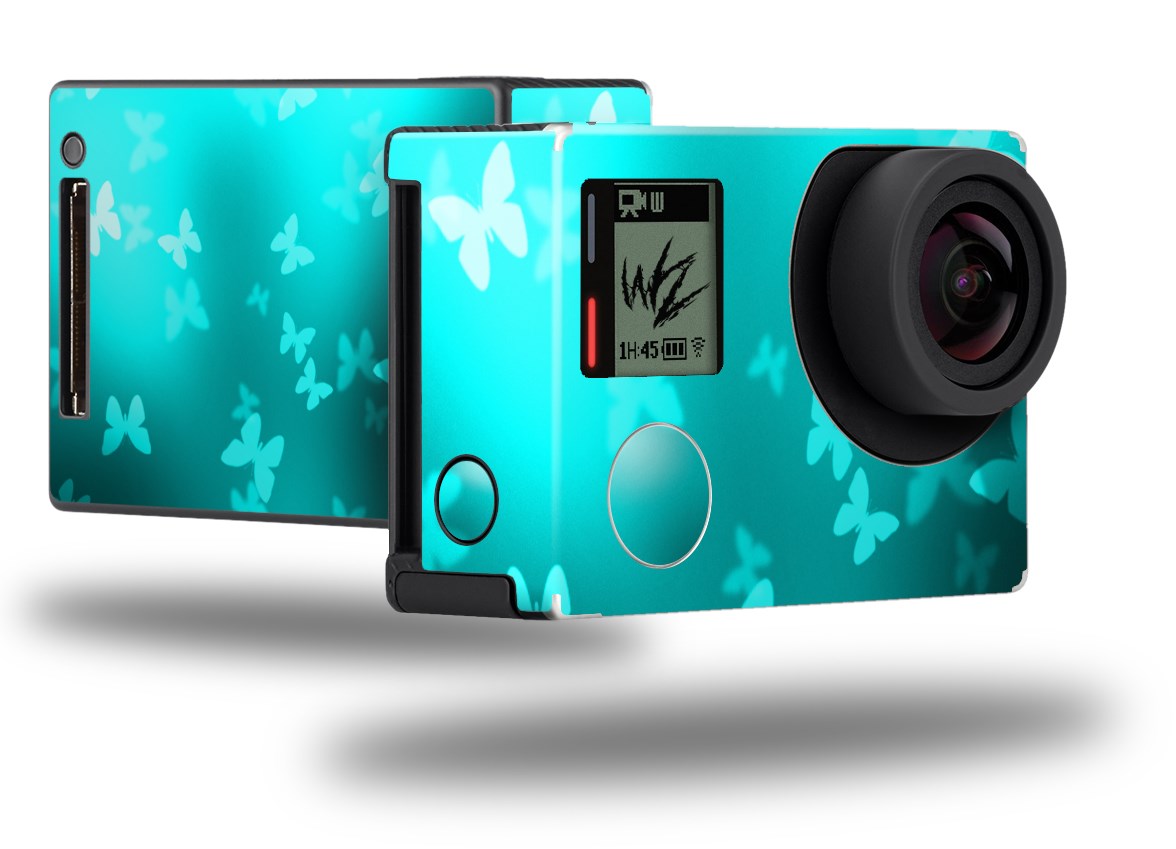 Bokeh Butterflies Neon Teal - Decal Style Skin fits GoPro Hero 4 Black Camera (GOPRO SOLD SEPARATELY)