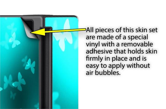 WraptoSkinz™ skins are superb photo quality designs and vibrant colors printed with special Eco-Friendly, fade resistant inks. Our skins are self-adhering flexible vinyl skins that helps prevent scratches. Made of composite, multi-layered commercial grade materials. The bottom layer is made with a special removable adhesive that is easily positioned and applied without air bubbles. We print your design on the bottom layer then bond a professional grade laminate over the entire skin adding a glossy protective finish.