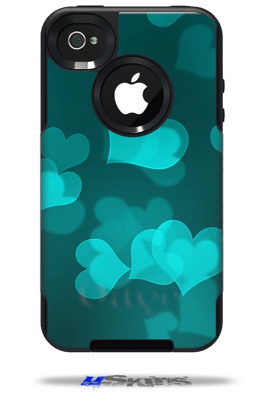 Bokeh Hearts Neon Teal - Decal Style Vinyl Skin fits Otterbox Commuter iPhone4/4s Case (CASE SOLD SEPARATELY)