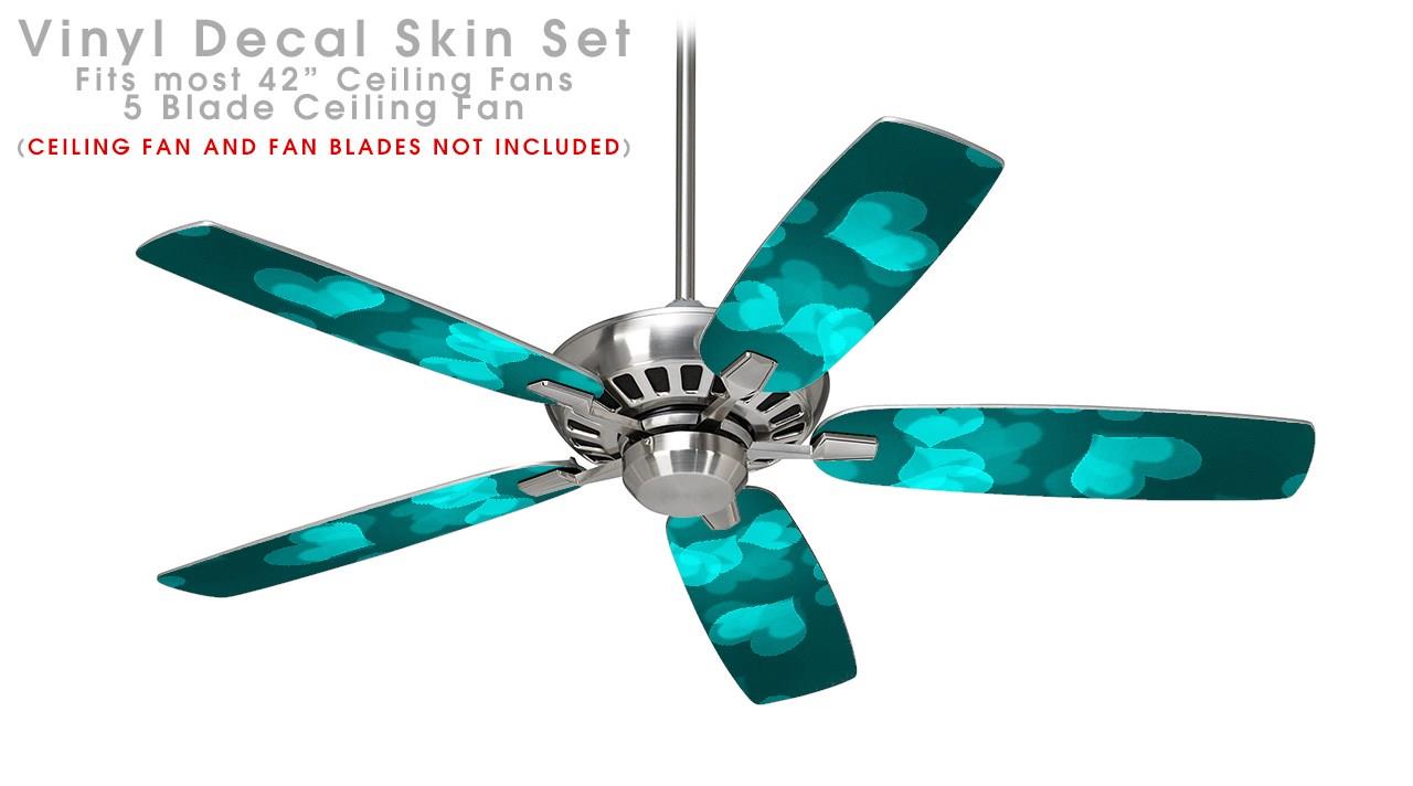 Bokeh Hearts Neon Teal - Ceiling Fan Skin Kit fits most 42 inch fans (FAN and BLADES SOLD SEPARATELY)