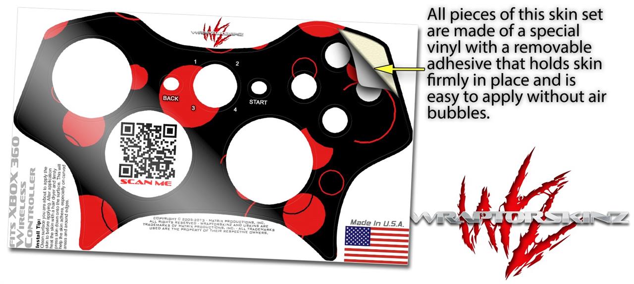 XBOX 360 Wireless Controller Decal Style Skin - Lots of Dots Red on Black (CONTROLLER NOT INCLUDED)
