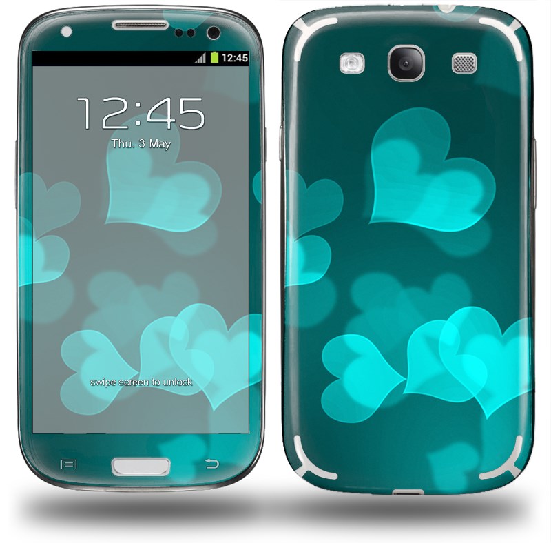 Bokeh Hearts Neon Teal - Decal Style Skin (fits Samsung Galaxy S III S3)