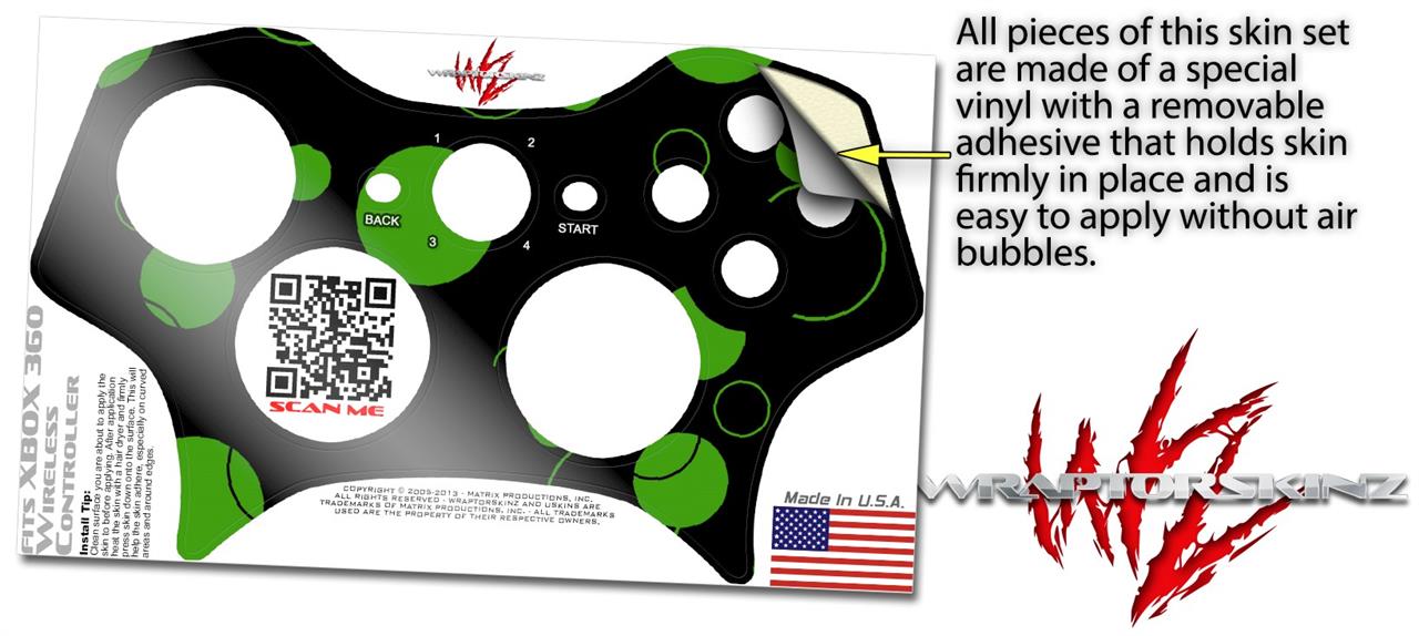 XBOX 360 Wireless Controller Decal Style Skin - Lots of Dots Green on Black (CONTROLLER NOT INCLUDED)