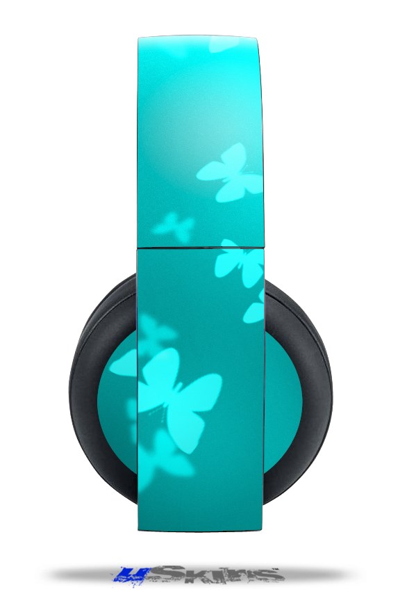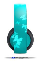 Vinyl Decal Skin Wrap compatible with Original Sony PlayStation 4 Gold Wireless Headphones Bokeh Butterflies Neon Teal (PS4 HEADPHONES NOT INCLUDED)