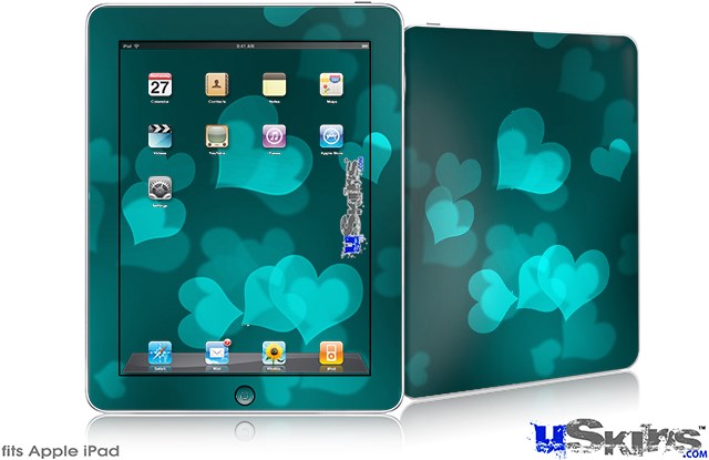 iPad Skin - Bokeh Hearts Neon Teal