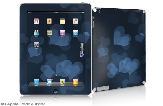 iPad Skin - Bokeh Hearts Blue (fits iPad2 and iPad3)
