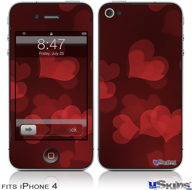 iPhone 4 Decal Style Vinyl Skin - Bokeh Hearts Red (DOES NOT fit newer iPhone 4S)
