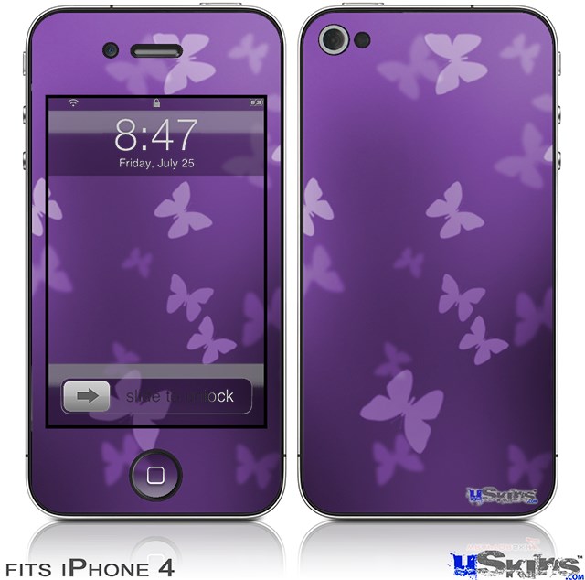 iPhone 4 Decal Style Vinyl Skin - Bokeh Butterflies Purple (DOES NOT fit newer iPhone 4S)