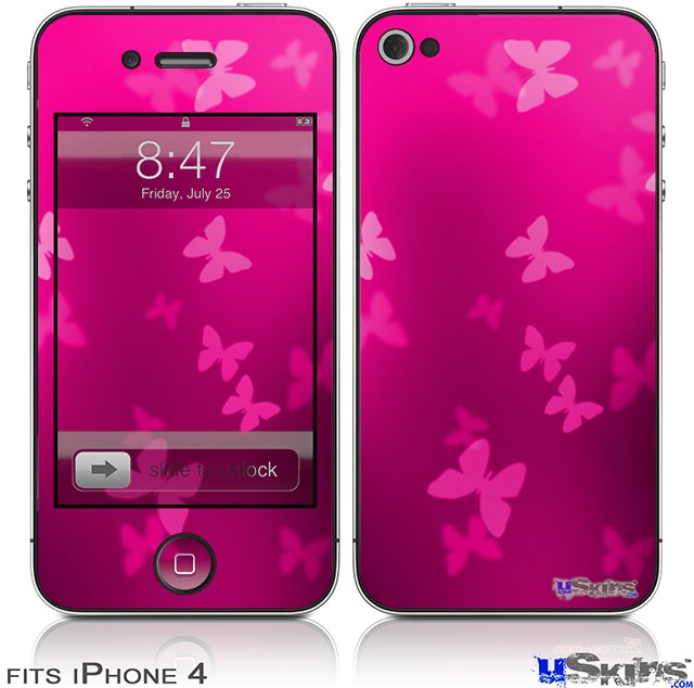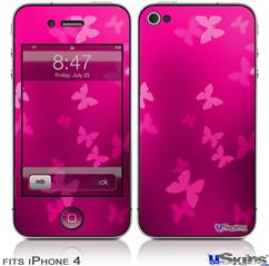 iPhone 4 Decal Style Vinyl Skin - Bokeh Butterflies Hot Pink (DOES NOT fit newer iPhone 4S)