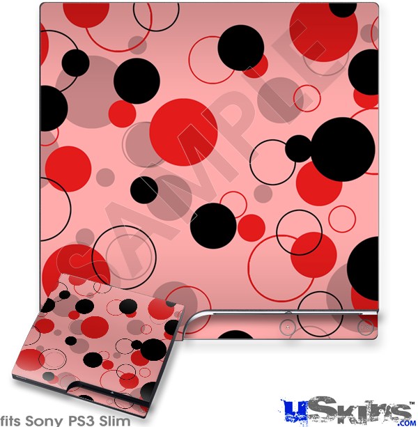 Decal Skin compatible with Sony PS3 Slim Lots of Dots Red on Pink