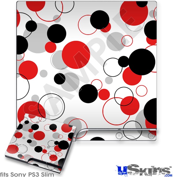 Decal Skin compatible with Sony PS3 Slim Lots of Dots Red on White
