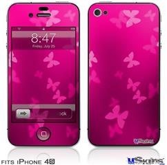 iPhone 4S Decal Style Vinyl Skin - Bokeh Butterflies Hot Pink