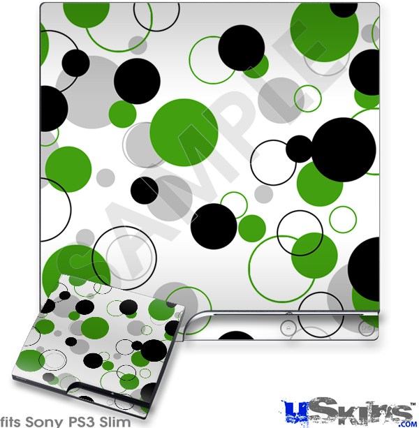 Decal Skin compatible with Sony PS3 Slim Lots of Dots Green on White