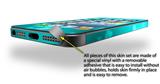 uSkins™ are self adhering vinyl skins that help prevent scratches and look great doing it. Unlike bulky silicon, plastic or metal cases and faceplates, uSkins are designed to be thin and very tough. uSkins are a composite of two layers of commercial grade materials. The bottom layer is a soft, flexible vinyl with a special removable adhesive that is easily positioned, applied without air bubbles, and effortlessly removed without leaving a sticky residue. Next we print the bottom layer with UV protected, fade resistant inks that deliver superb photo quality designs in vibrant colors. Finally we bond a professional grade laminate over the entire skin adding a glossy protective finish.